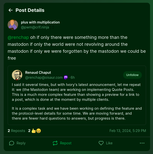 Restriction of the protocol or the software that implements the protocol? Couldn't you just have software that redirects profiles AND imports the same database of posts instead of just the former? Or is it a limitation of activity pub?