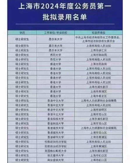 上海录取公务员清一色的留学生!