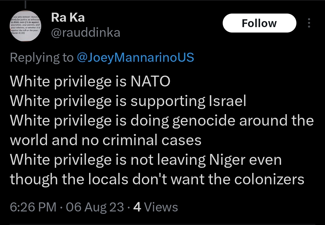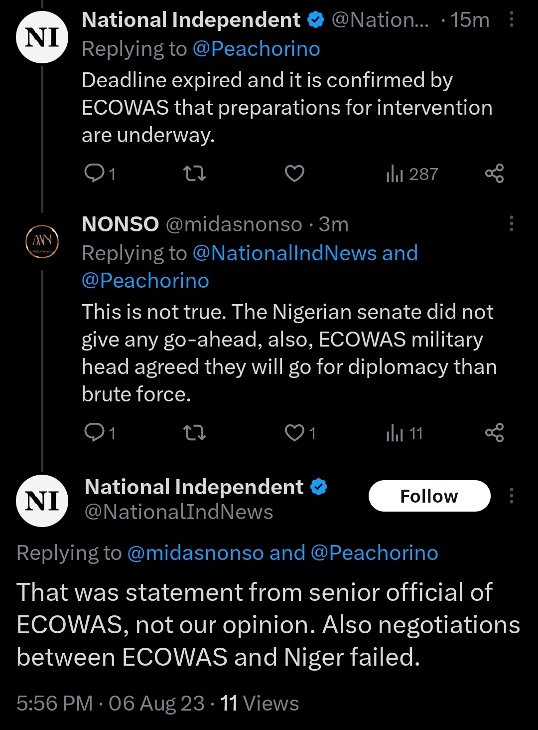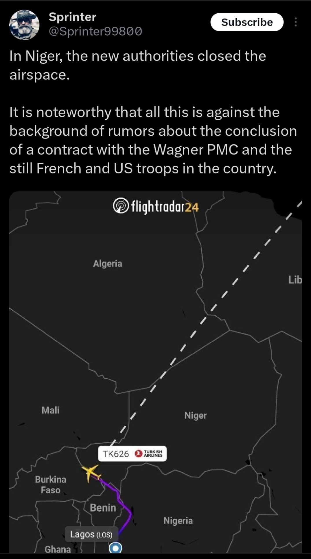 For whatever it's worth, there's 30mins left in the ultimatum that was given to Niger, so I guess we'll see what happens tonight.