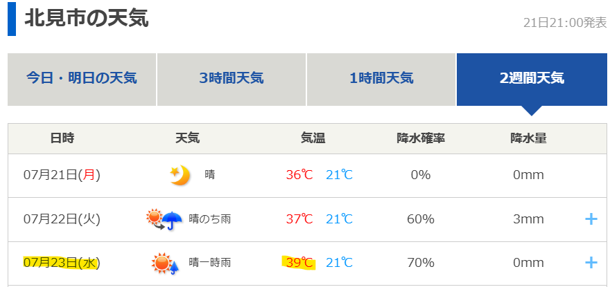 #北海道 #北見市 の明後日23日の気温に衝撃……。