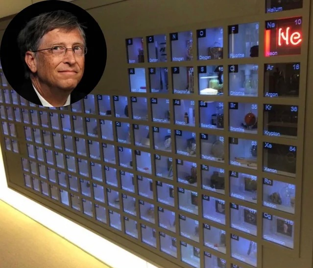 比尔·盖茨的办公室里有一张壁挂式元素周期表,上面列有各种元素的样本。 https://t.co/q0a2baWIiN