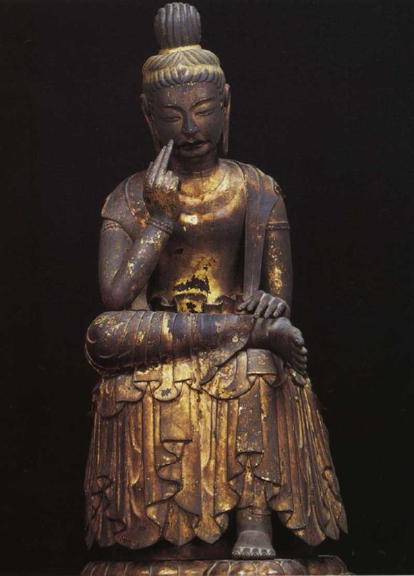 日本京都高隆寺弥勒菩萨半身像(哭泣弥勒)(飞鸟时代后期)弥勒菩萨像,高90厘米。