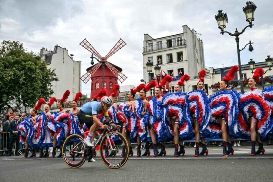红磨坊前为骑行者表演的法国康康舞。巴黎,2024 年。 https://t.co/L1F7ijJS6I
