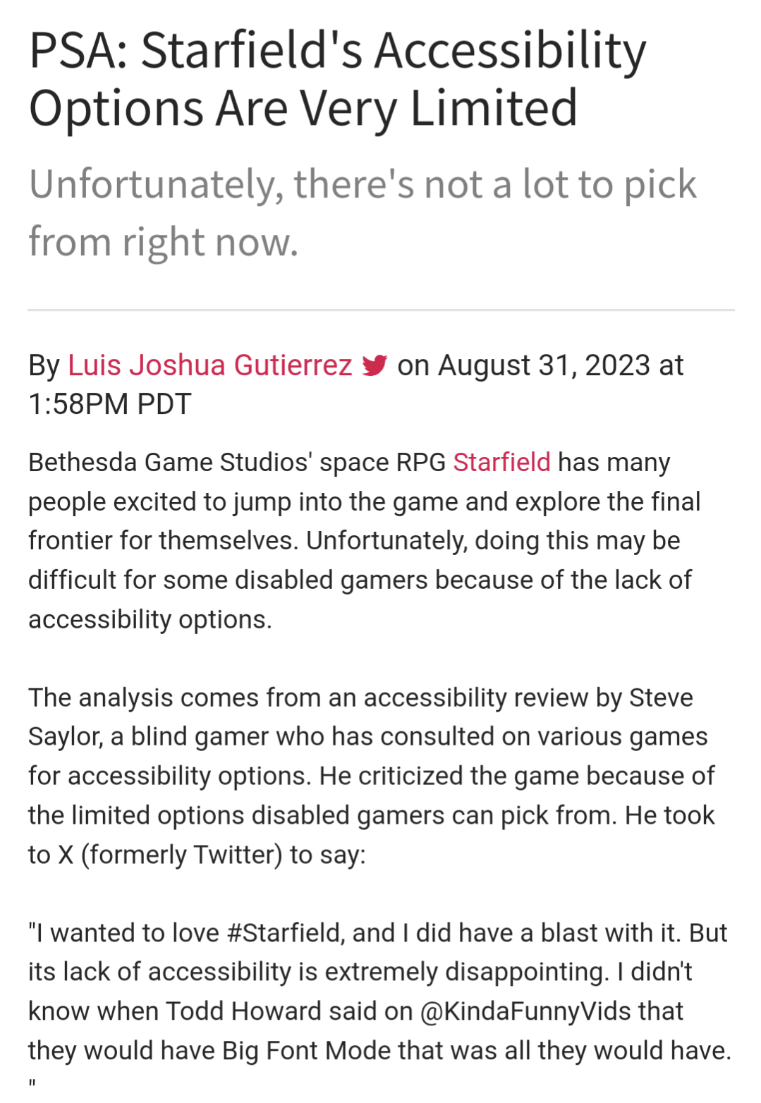 nostr:npub1scjc2e839xfmmsjfqr87huvu9qxenptmamfrcj6s98gv6frq5wgqh0el3p Yeah, i looked the dude up because the name sounded familiar hes one of those people thats legally blind without their glasses. Dudes grift is just complaining on YouTube about text not being big enough in video gams and telling devs to pay him for consulting
