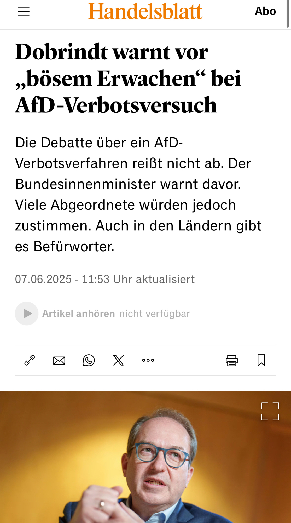 Mancher Innenminister dürfte eher beim Unterlassen des AfD-Verbotsverfahrens sein „böses Erwachen“ erleben. Danach sagte Dobrindt noch: „Ich rate dazu, die AfD aus der Mitte heraus wegzuregieren.“