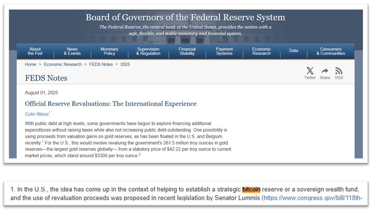Fed floats idea of funding a Strategic #Bitcoin Reserve by revaluing gold.