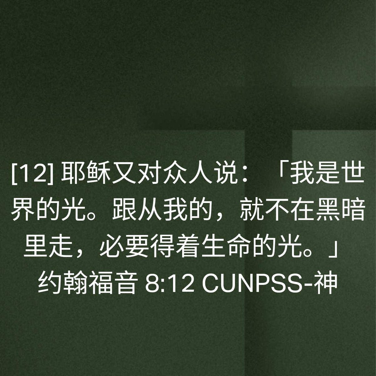 [12] 耶稣又对众人说:「我是世界的光。跟从我的,就不在黑暗里走,必要得着生命的光。」