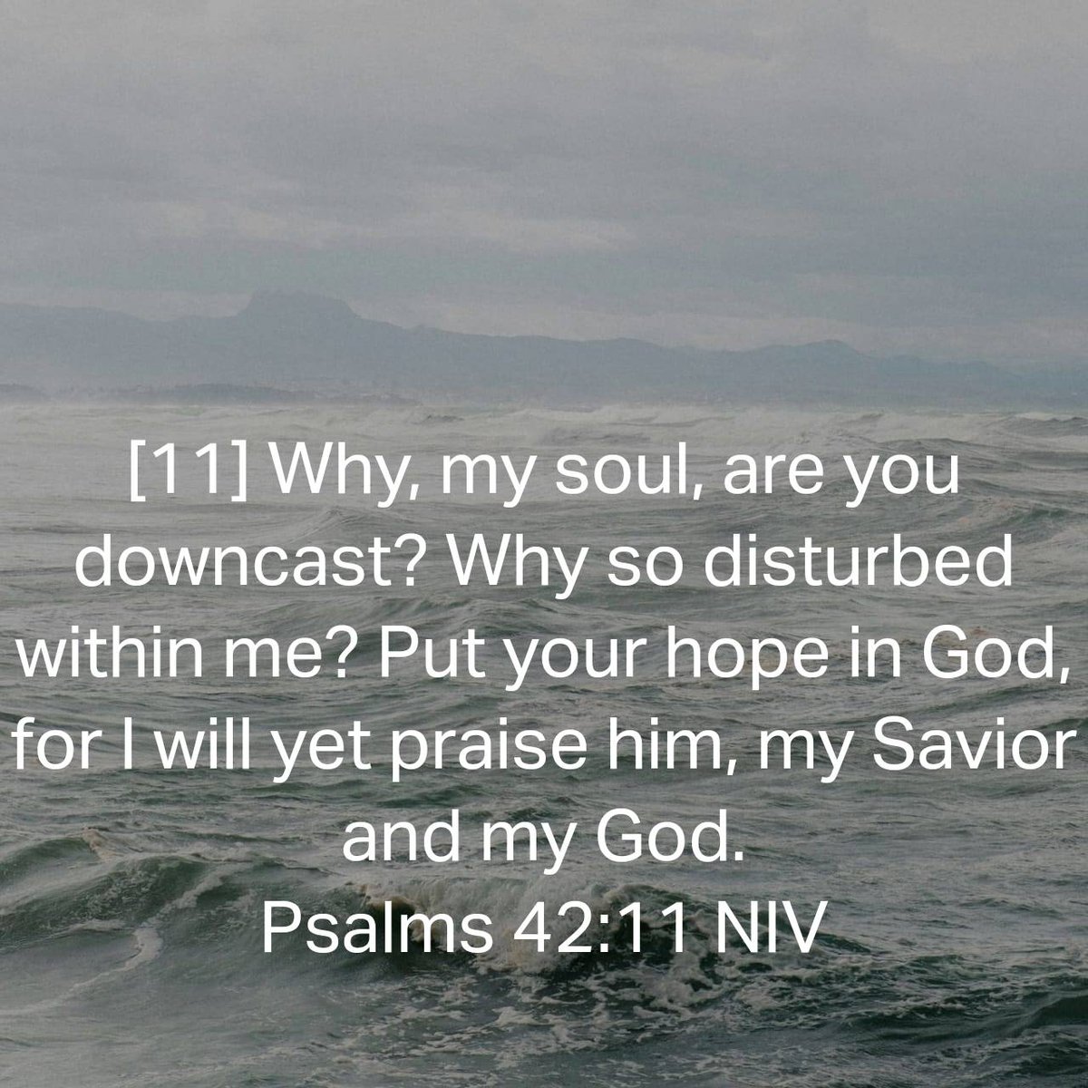 [11] Why, my soul, are you downcast? Why so disturbed within me? Put your hope in God, for I will yet praise him, my Savior and my God.