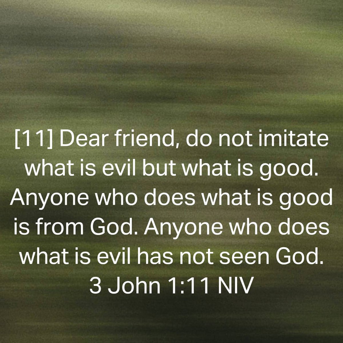 [11] Dear friend, do not imitate what is evil but what is good. Anyone who does what is good is from God. Anyone who does what is evil has not seen God.