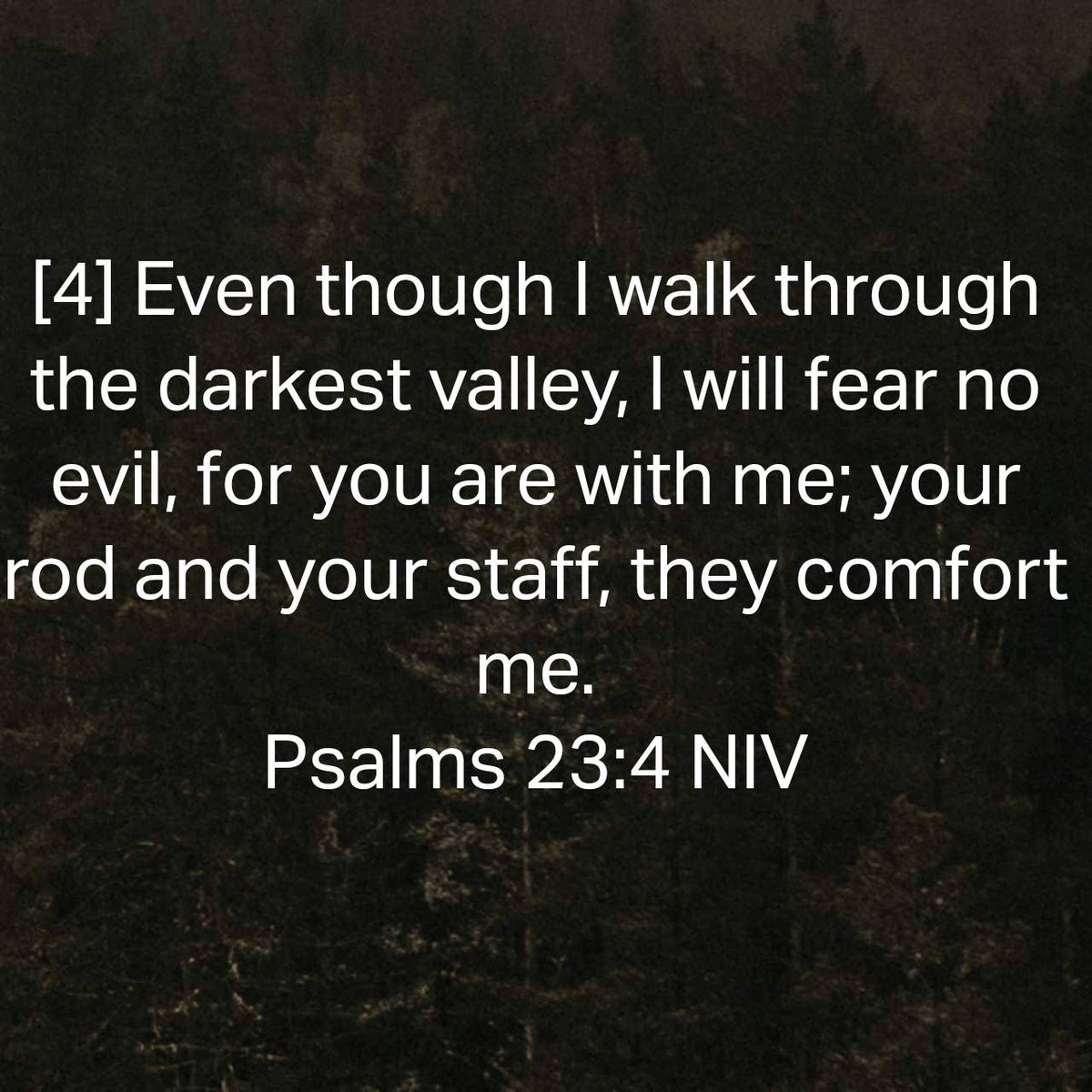 [4] Even though I walk through the darkest valley, I will fear no evil, for you are with me; your rod and your staff, they comfort me.