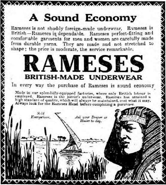 🪷 5 Aug is #NationalUnderwearDay: "Rameses is British - #Rameses is dependable" ... Now we know why #Ramses the Great was Great ... because he wore good quality woolen British-made unshrinkable underwear! Pharaoh's pants past. #underwearday 🪷