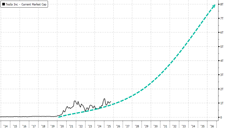Unlocking the full 423 million-share payout will be challenging. To justify an $8.5 trillion market value - up from about $1 trillion on Friday - Tesla would need to sell 12 million additional EVs, secure 10 million autonomous driving subscriptions, deploy 1 million robotaxis, sell 1 million AI-powered robots, and expand adjusted earnings 24-fold to $400 billion.