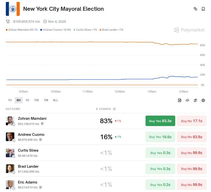The decision follows reports that Adams was entertaining potential job offers from both the Trump administration and the private sector in exchange for bowing out of the race and helping to clear a path for former New York Governor Andrew Cuomo, who is polling in second place, to challenge Mamdani. According to Polymarket, Mamdani's odds dipped fractionally on the news, but he is still overwhelmingly expected (with 83% odds) to turn NYC into a communist shithole.