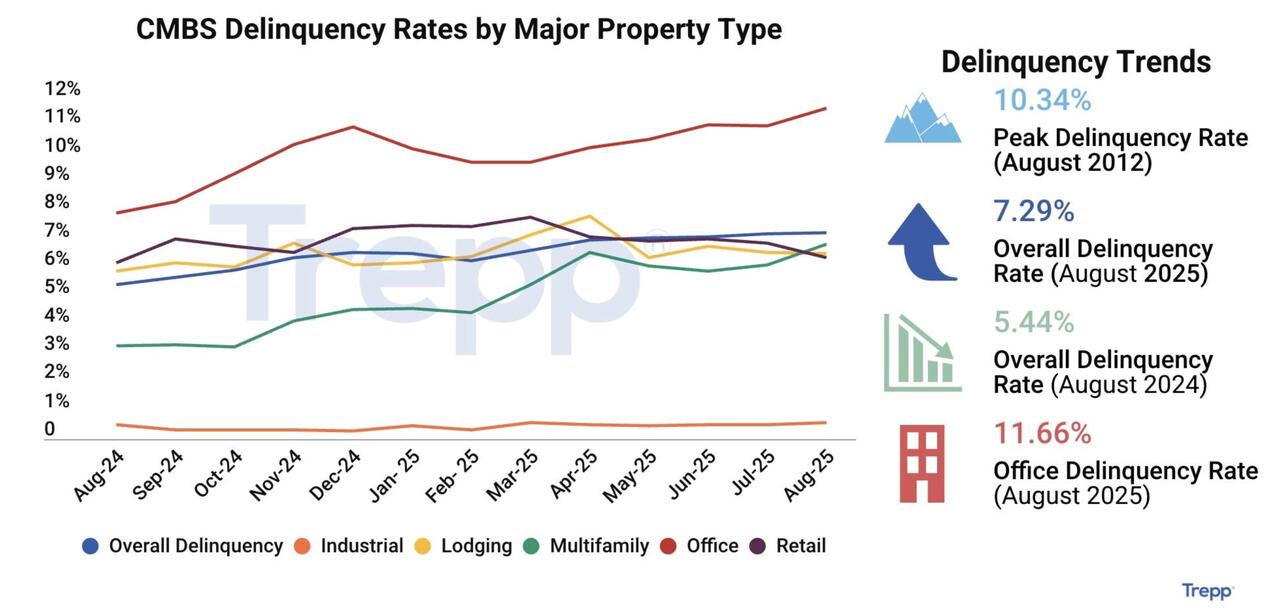 Trepp, âCMBS Delinquency Rate Rises for Sixth Straight Month to 7.29%,â Sept. 24, 2025.