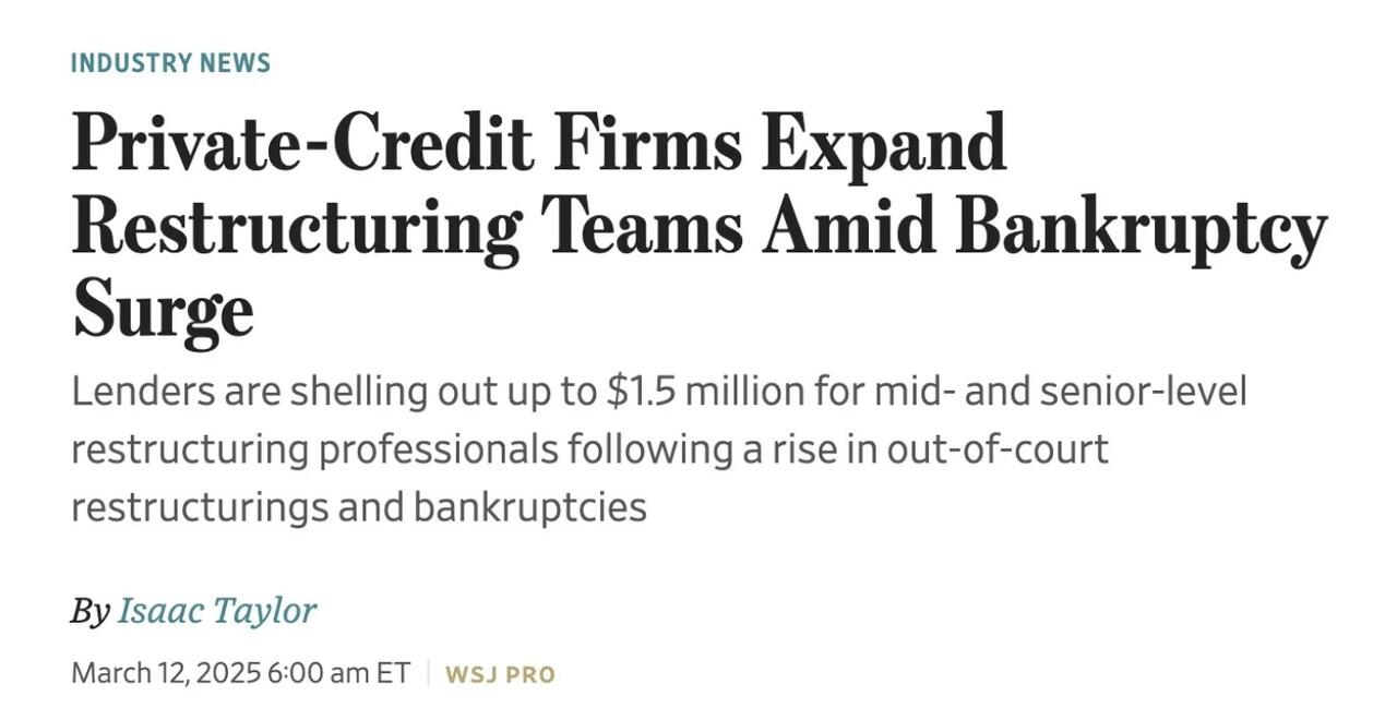 Wall Street Journal Pro, Isaac Taylor, âPrivate-Credit Firms Expand Restructuring Teams Amid Bankruptcy Surge,â Mar. 12, 2025.