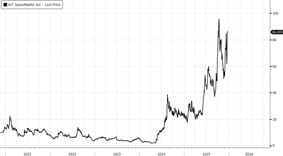AST shares in New York are up 3% on the session, adding to the year-to-date gains of more than 300%.