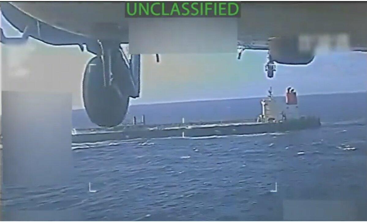 Reports based on US officials describe that the crew got creative in their evasion efforts, as they've added a Russian tricolor to the side of the vessel and so are now claiming it is operating under Russian jurisdiction.