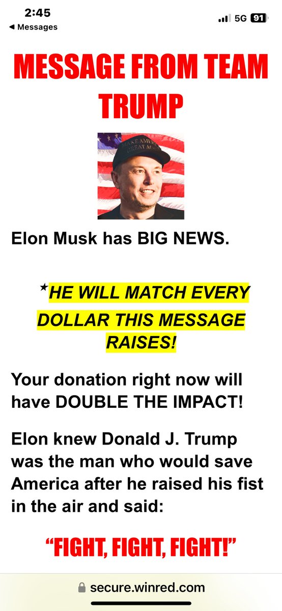收到邮件:所有给川普的捐款,马斯克都会Match一倍!