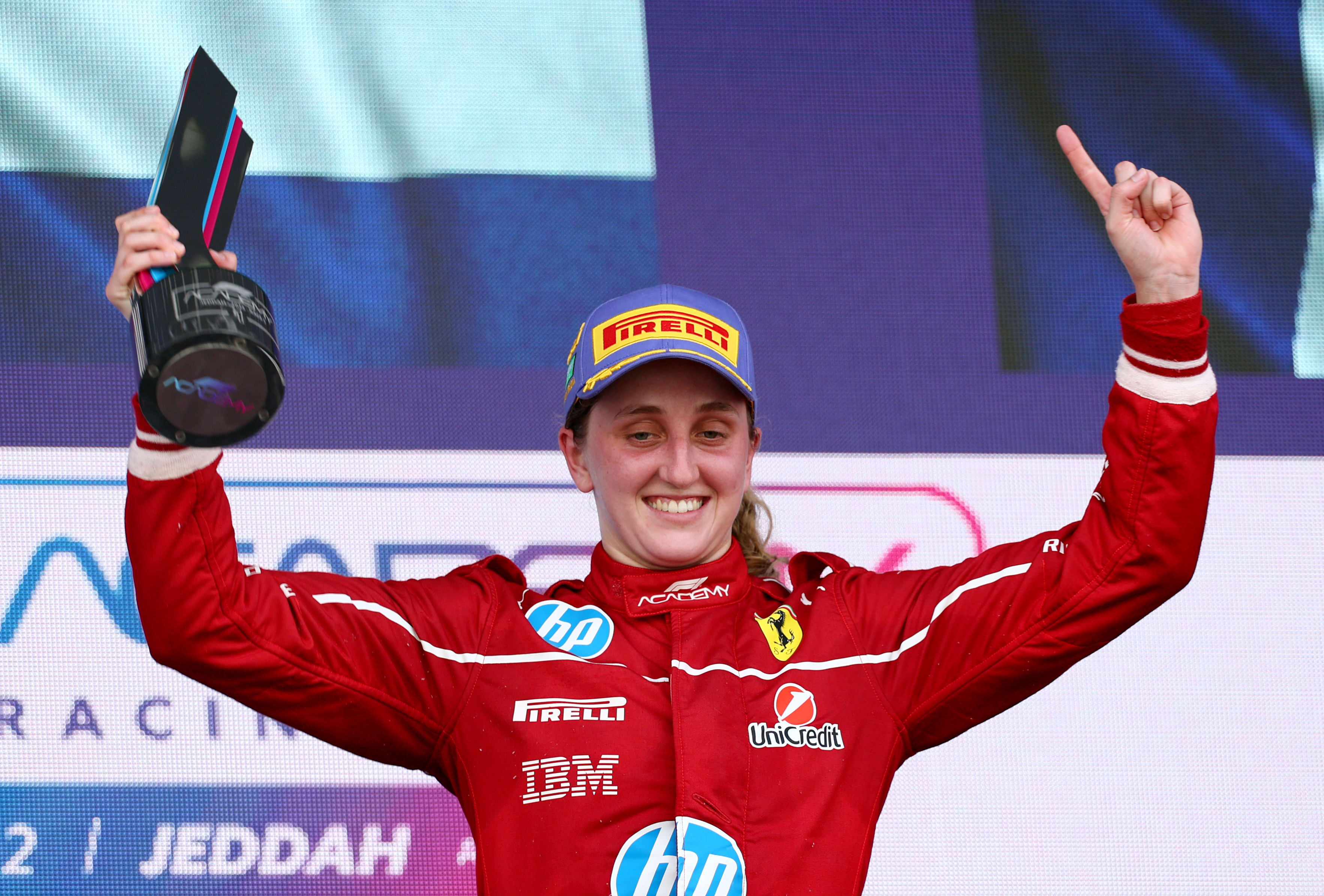 In a tense extended battle for the win during Race 2 in Jeddah, it was Maya Weug who came out on top as Chloe Chambers was demoted to P2 due to a five-second penalty ahead of Mercedes’ Doriane Pin.