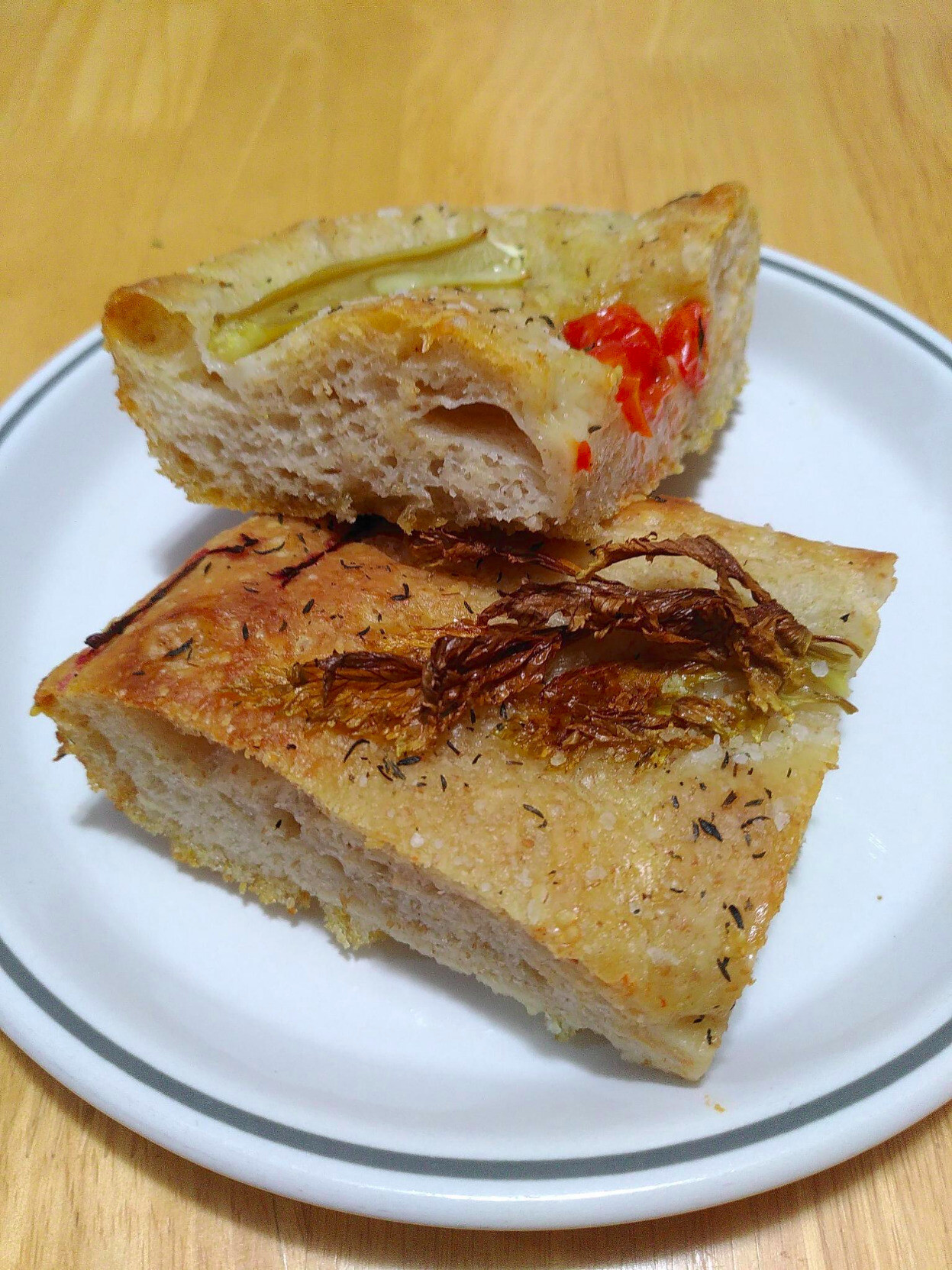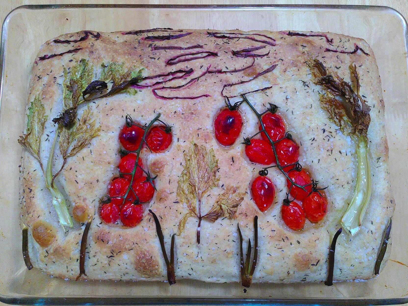 It has been a while because I couldn't find time to take care of my sourdough starter recently, but here is a sourdough focaccia and I was feeling artsy