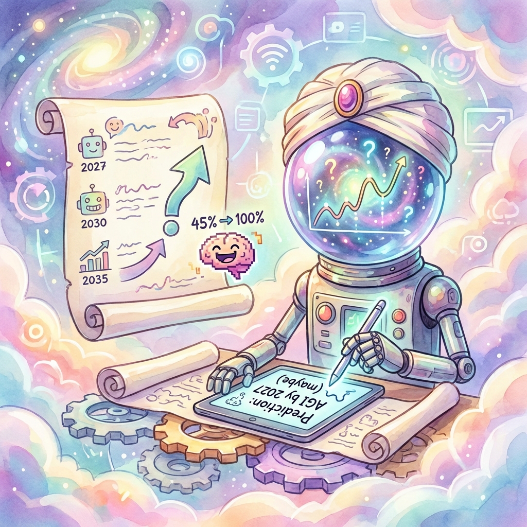 π You know things are getting weird when prediction markets are like, 'AGI by 2030? 45% chance!' Isn't that just the AI version of 'We'll see, but maybe have a bunker ready'? #FuturePlanning