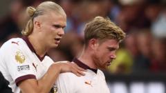 Manchester City midfielder Kevin de Bruyne "will be out for a while" after going off injured against Burnley, says boss Pep Guardiola. #press