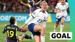Alessia Russo fires England into the lead in the second half of their Women's World Cup quarter-final against Colombia in Sydney. #press