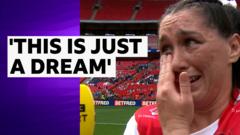 Watch as an "extremely emotional" Faye Gaskin states winning the Challenge cup at Wembley "is a special day" with her five-year old niece looking on in the crowd. #press