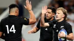 New Zealand storm to their 50th win at the Rugby World Cup as they thrash Namibia, but lose Ethan de Groot to a late red card for a dangerous collision. #press