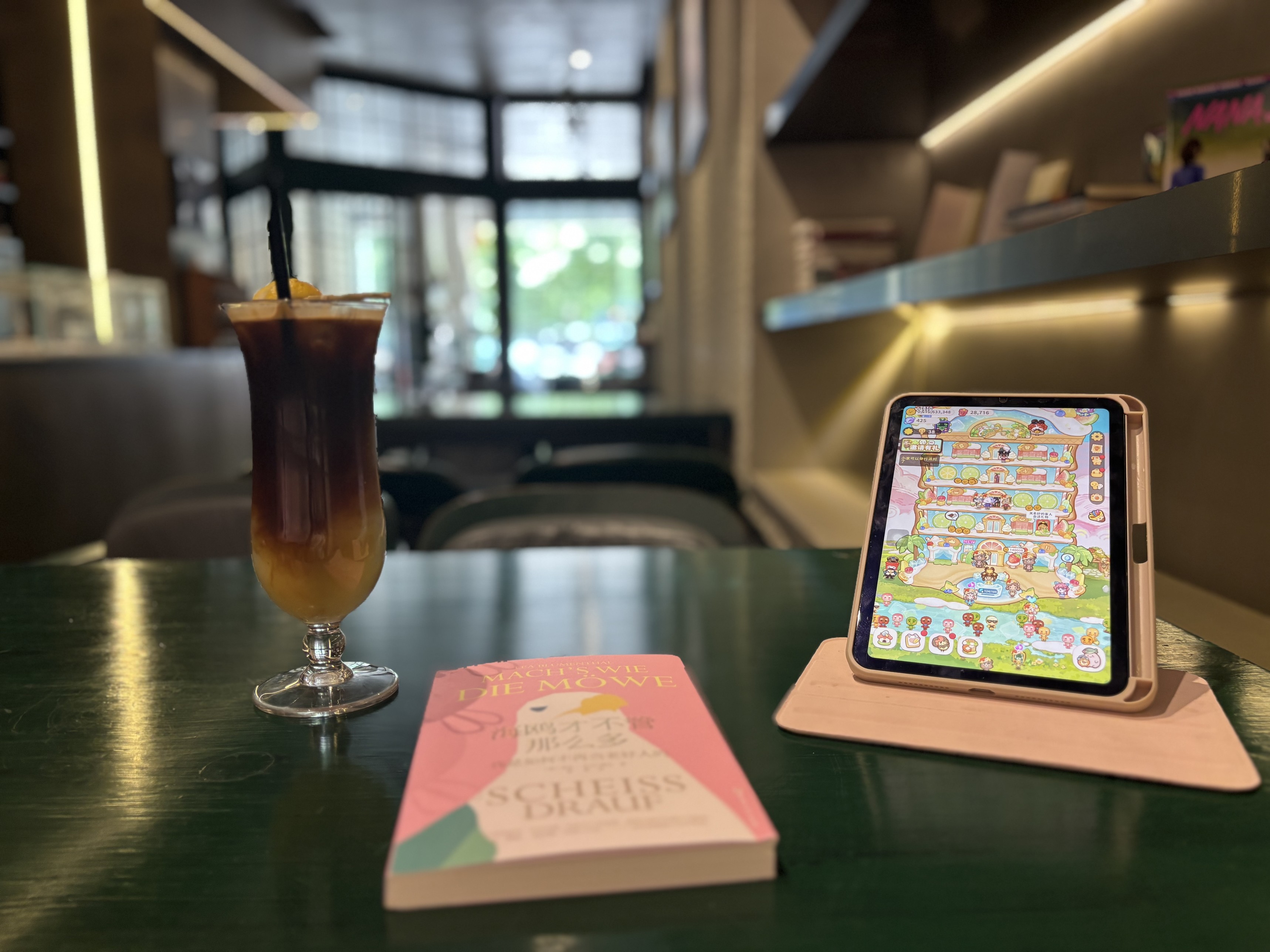 隔壁那家有手冲的咖啡店今天人爆满,姐姐换了一家新开的咖啡店玩游戏。