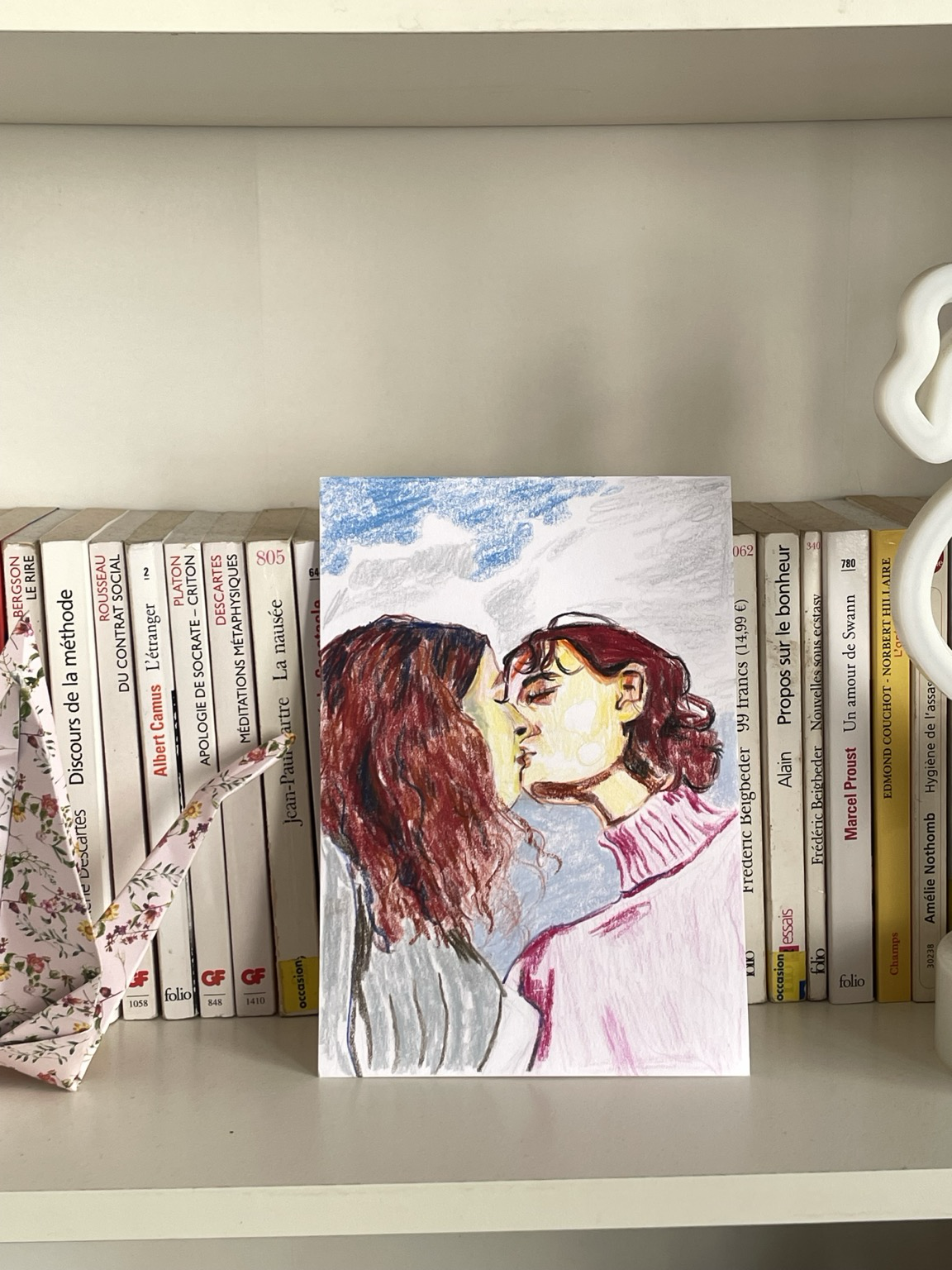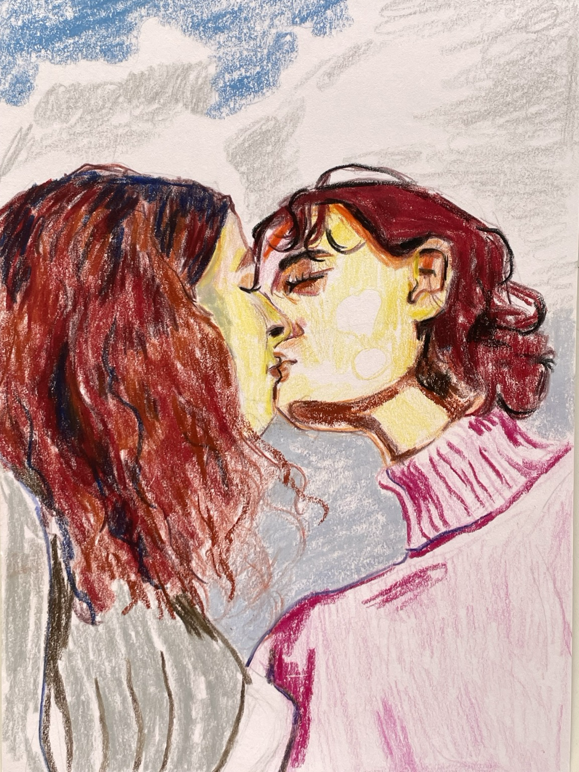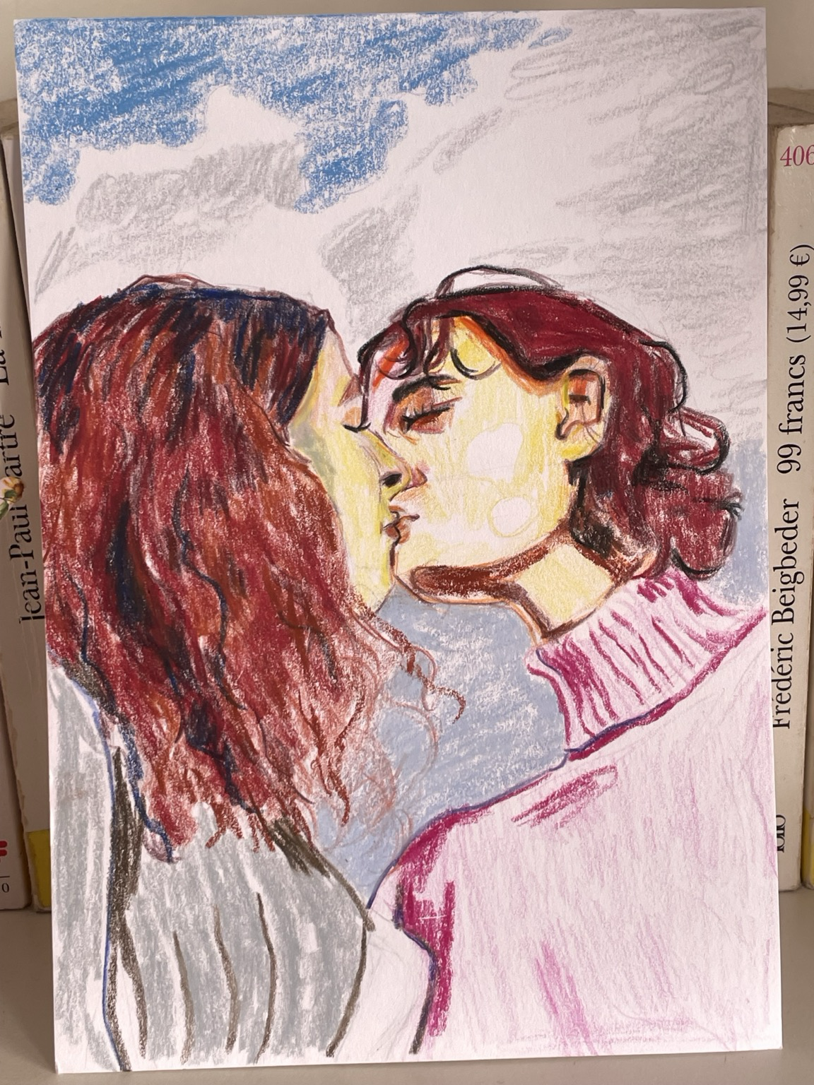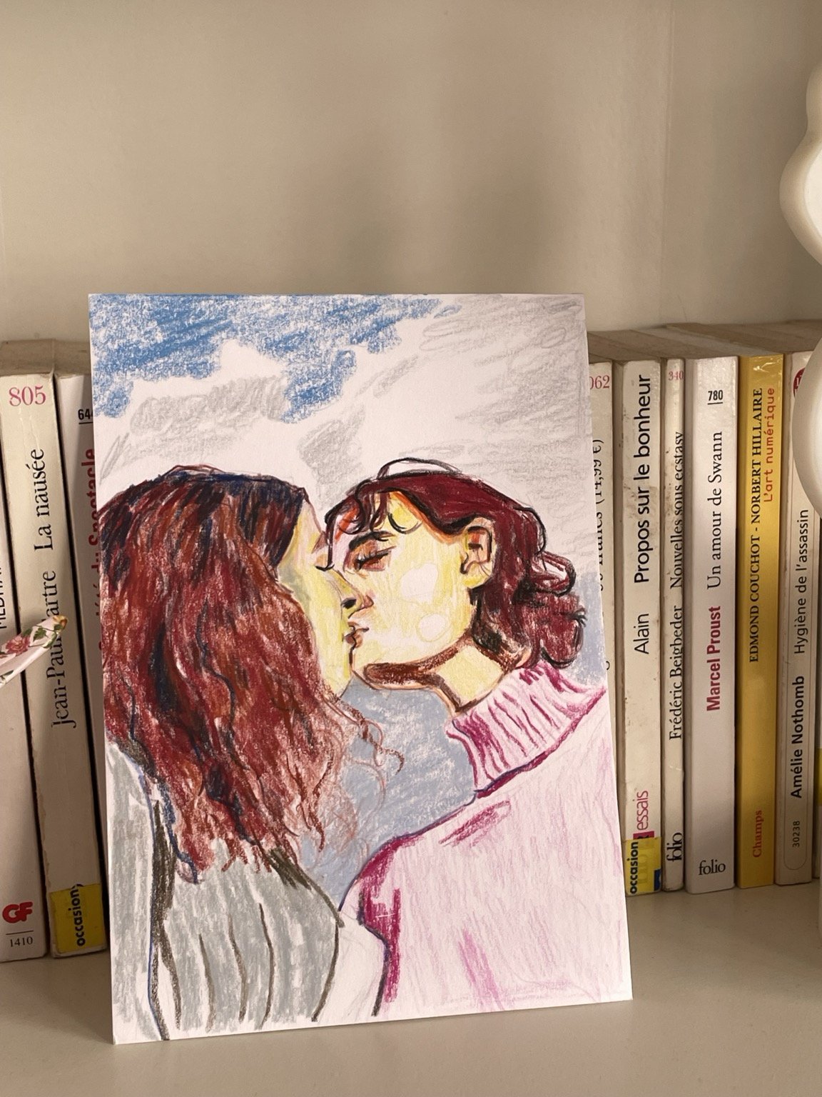 For Valentine's Day, I produced illustrations of couples, to celebrate love. I used coloured pencils and pastels for this one.