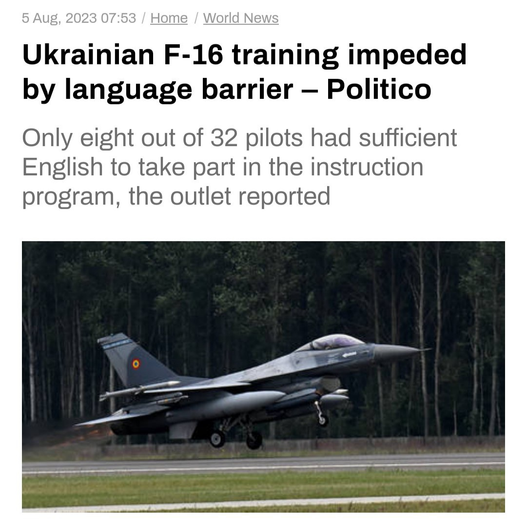 However, “English proficiency remains a sticking point” with the rest of the 32 Ukrainian pilots earmarked for instruction on the F-16 fighter jets, Politico said. As a result, 20 personnel with basic English will reportedly start language courses in Britain this month.