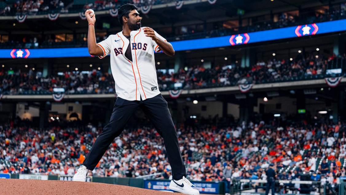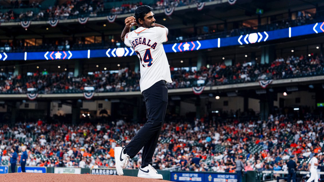 Behind the scenes with @SRTheegala throwing the first pitch at last nightβs @Astros and Yankees game π₯ https://t.co/BBWJcCnCU6 https://video.twimg.com/amplify_video/1774500987522158593/vid/avc1/720x900/wgNfYJ-m6KZIb2Hu.mp4?tag=14