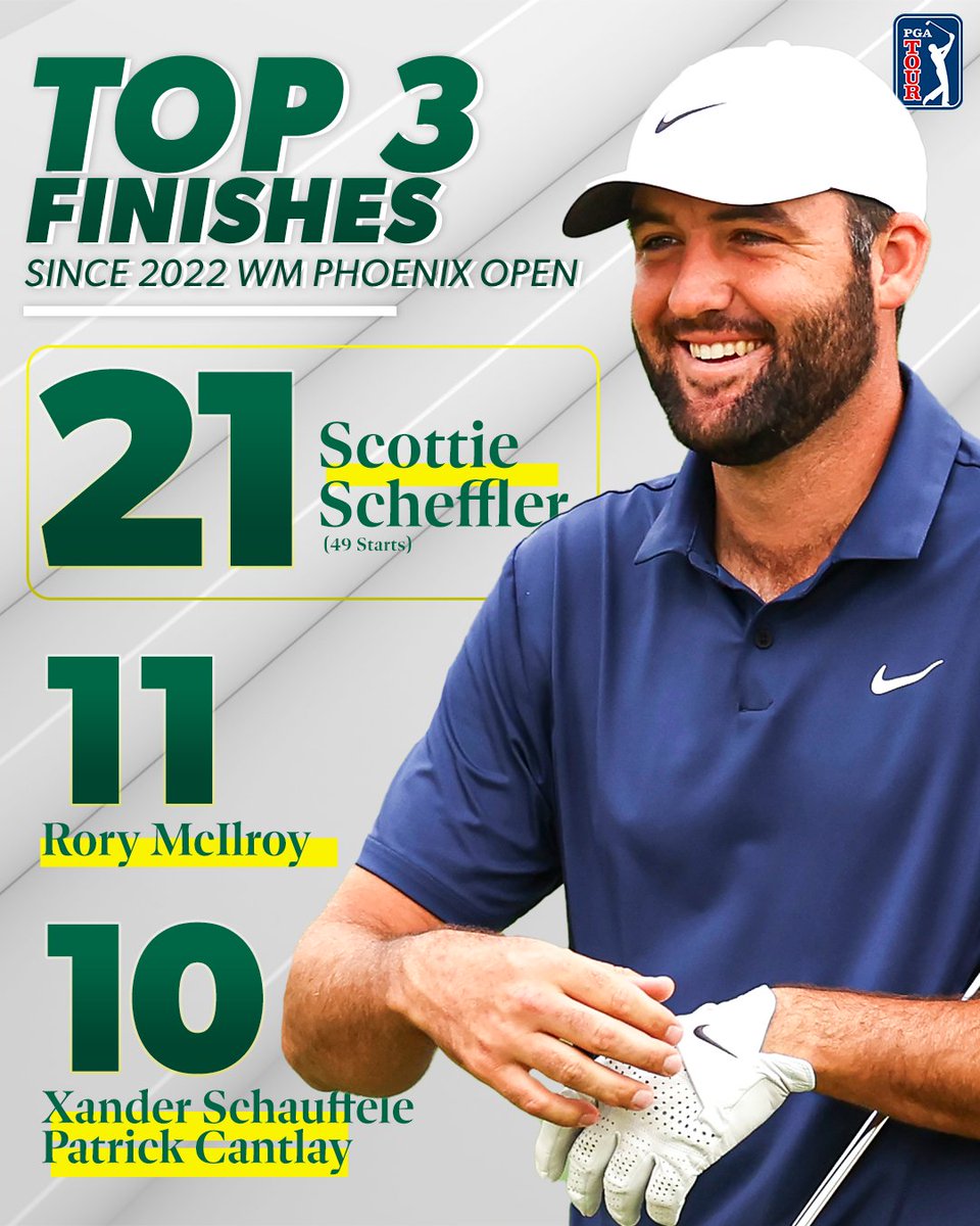 Since his first win at the 2022 @WMPhoenixOpen, Scottie Scheffler has 21 top-3 finishes.