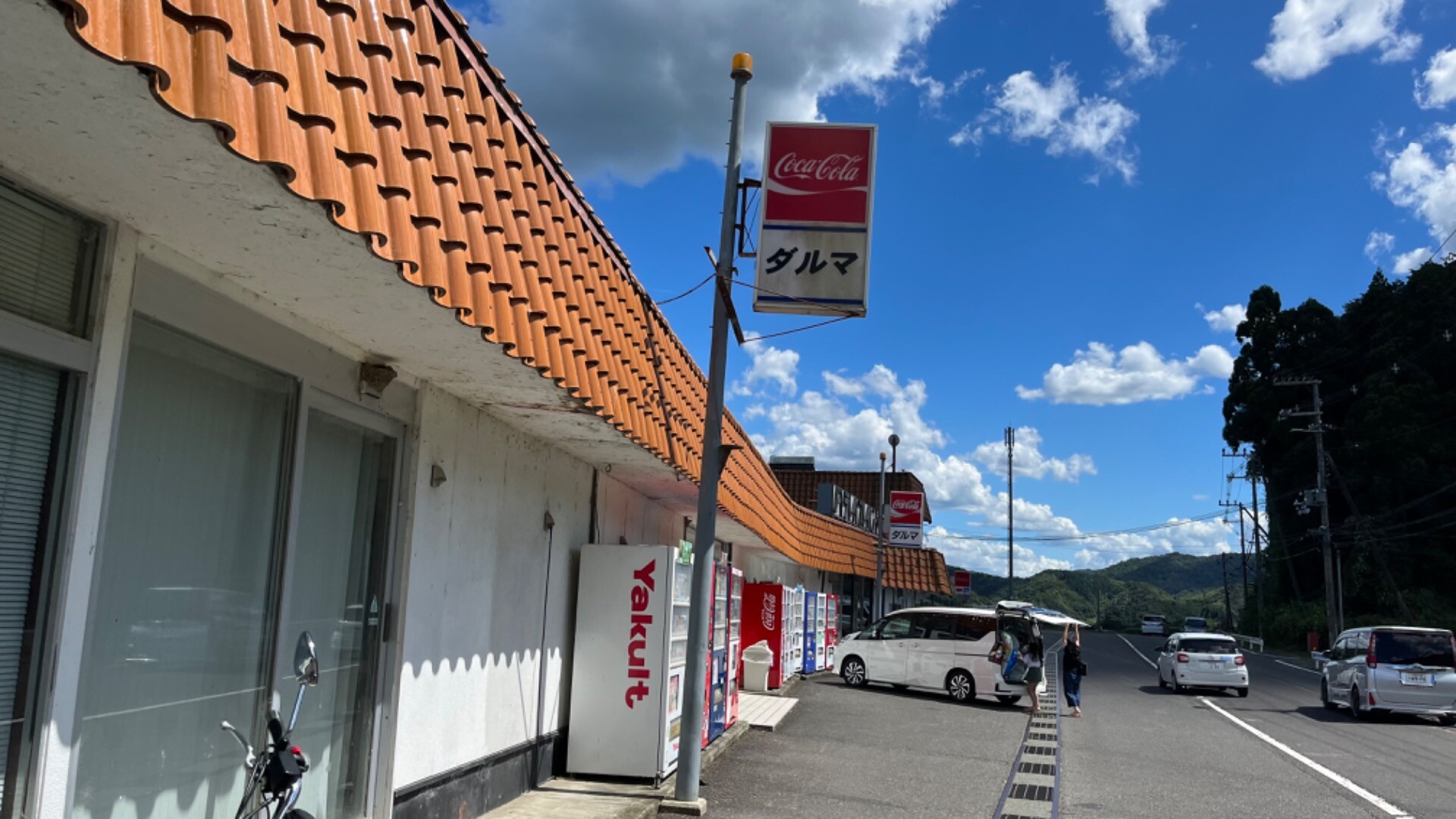 後ろに写ってるラーメン自販機。確か日本に稼働してるのは5台くらい。そのうち3台がこのドライブインダルマにある。残りの2台は神奈川の中古タイヤ市場だったかな。