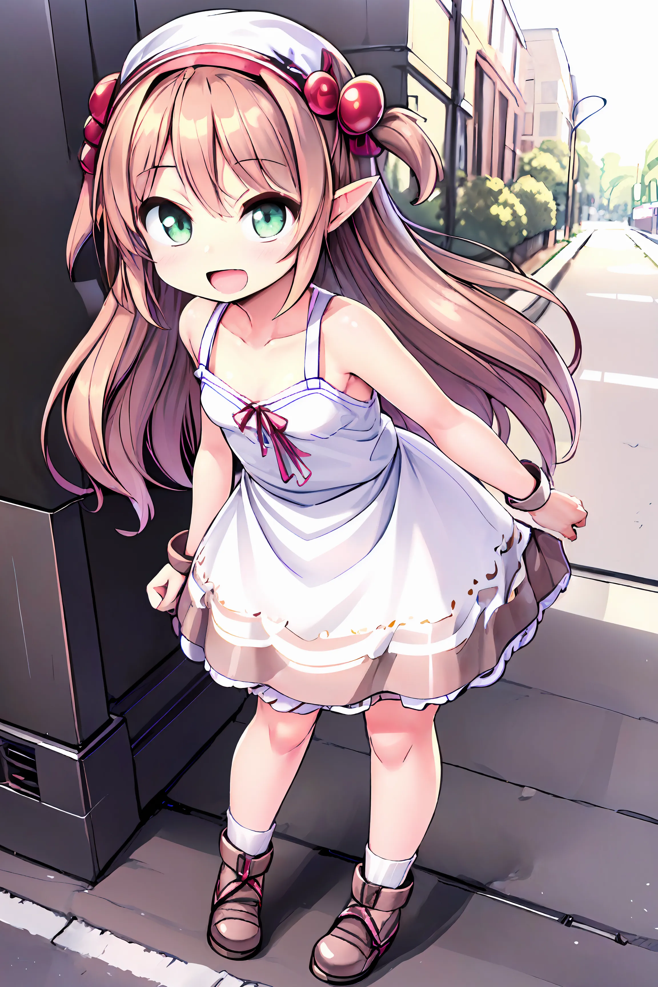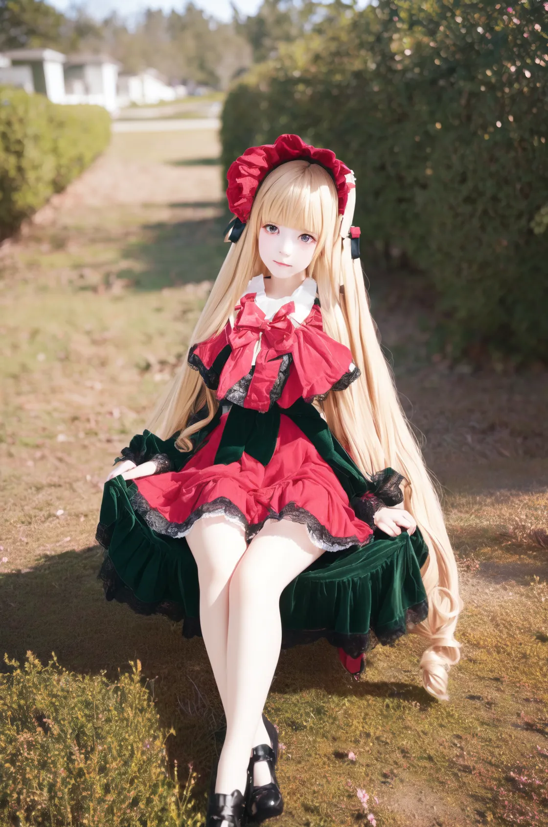 #majinai shinku, a doll is sitting in a chair with a red hat, lolita, flat chest, shy, clear face, cute teenage girl, slutty lolita, horny girl, pervert, mistress, sassy loli, femdom, perfect anatomy, wet, outdoors, various color hair, short hair, disheveled hair, hair ribbon, hair ribbon, skirt, hair ribbon, belt, braid, head and wrists, , looking at viewer, looking at viewer side by side, looking at viewer ears, perfect anatomy, blush,