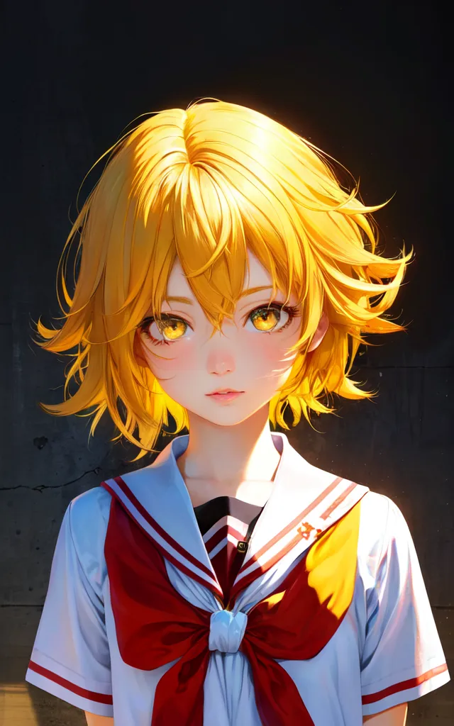 #majinai best quality, high detailed, Faint lips,UC:realistic, cinematic lighting kawaii cute 1girl 16yo yellow hair amber eyes, whiskers school_Uniform slouch socks platform sneakers upperbody