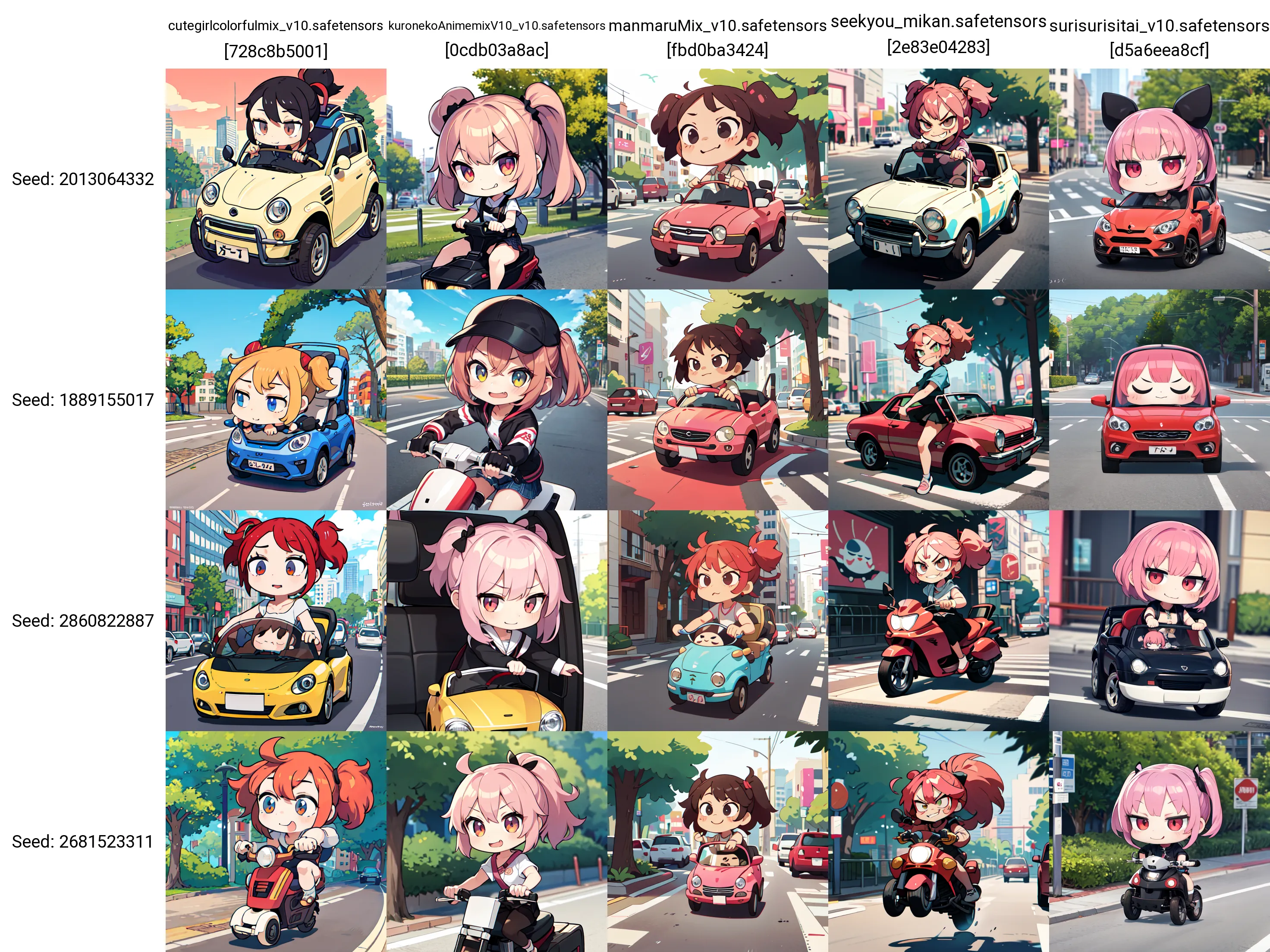 #majinai 1girl #solo #chibi #riding #car #street #park #smug