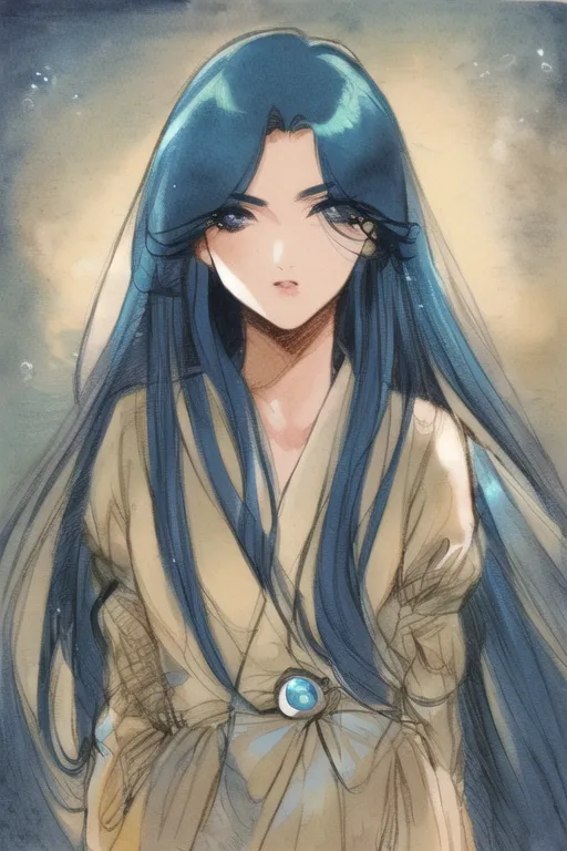 #majinai amano_yoshitaka #mikimoto_haruhiko #face_length #french_blade #1girl #lower_eyelashes #80s #sketch #watercolor #realistic #long #hair #slender #slim #masterpiece #best #quality #ultradetailed #detailed #light #an #extremely #delicate #and #beautiful #beautiful #detailed #hair&face&eyes #cowboy_shot #art #print