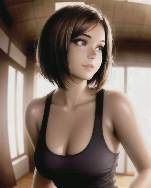 #majinai #dramatically #lit #back #lighting #master #piece #hyper #detailed #amazing #quality #beautiful #girl #perfect #face #realistic #eyes #ultra #detailed #eyes #ultra #detailed #face #shaded #face #perfect #lighting #realistic #lighting #strong #shadows #perfect #shadows #ultra #realistic #lips #ultra #realistic #nose #15yo #big #breasts #shiny #skin #shag #messy #hair #bob #cut #short #girl #short #hair #seductive #smile #brown #hair #freckles #skinny #skindentation #white #tank #top #fisheye #very #crowded #gym #background #depth #of #field #cleavage