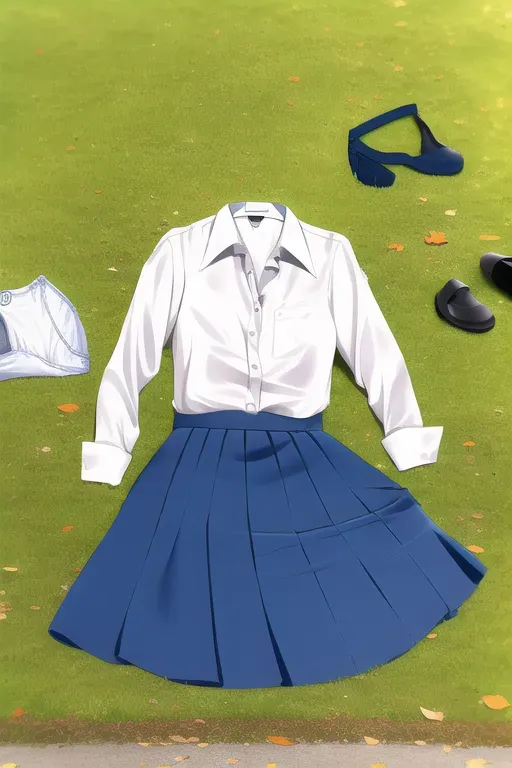 #majinai #masterpiece #best #quality {{{no #humans #still #life {Messy #clothes #clothes #on #Ground [blue #skirt #dress #shirt #panties #outdoors #from #above