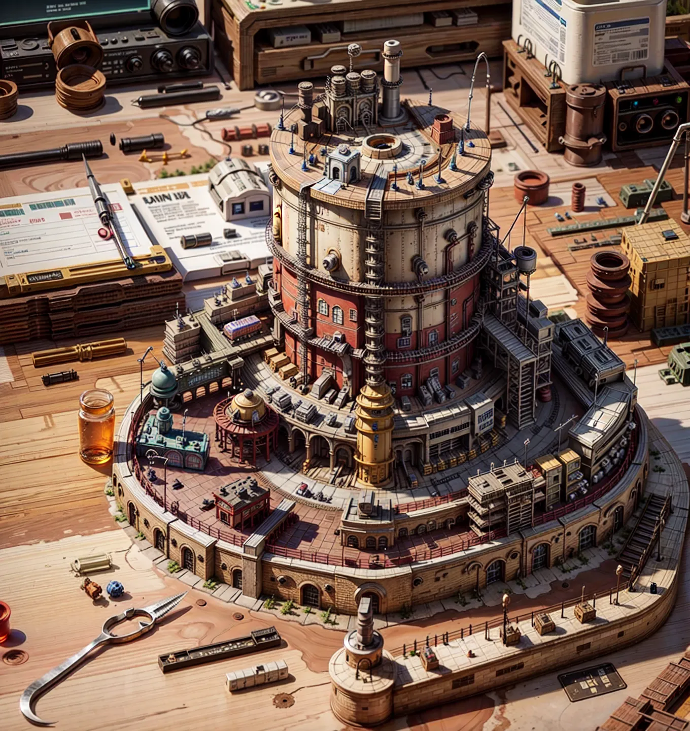 #majinai #background #is #On #a #desk #with #pliers #tweezers #and #props #mini #8k #RAW #photo #best #quality #masterpiece #refinery #pipelines #reactor #miniature #landscape #isometric #in #a #box
