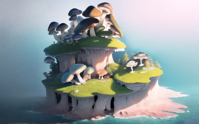 #majinai #masterpiece #best #quality #masterpiece #ocean #mushroom #isolated #island #mushroom #tree #fog #Extremely #detailed