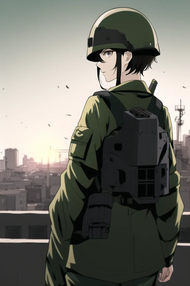 #majinai #masterpiece #best #quality #mechanized #soldier #girl #loli #anime #style #urban #in #background #soldier #clothing #combat #helmet #short #hair #hair #down #hyper #realistic #4 #k #rule #of #thirds #extreme #detail #detailed #drawing #hd #realism #sharp #focus #backlit