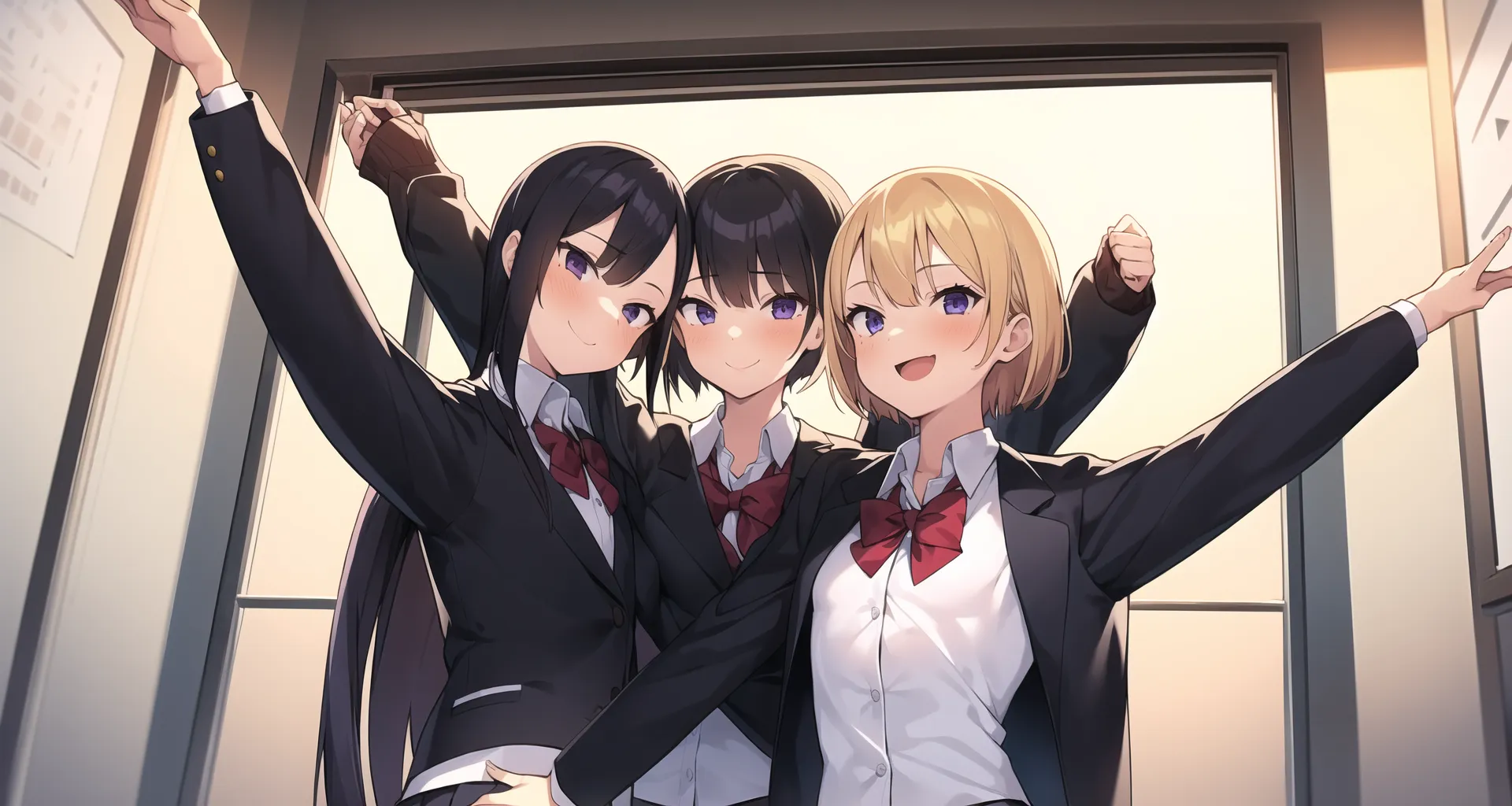 #majinai #2girls #smile #classroom #upperbody #flat #chest #school #uniform