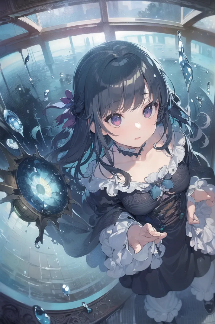 #majinai #1 #girl #solo #abstract #concept #art #art #nouveau #impressionism #illustrious #rainyday #rooftop #perspective #fish #eye #lens #effect #face #close #up #confused