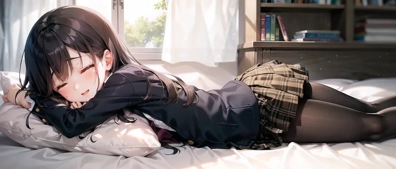#majinai #1girl #hetero #hyper #detailed #game #cg #light #particle #highly #detaled #light #a #loli #girl #finley #detailed #face #shiny #hair #in #the #bedroom #in #my #house #small #child #children #10yo #overflow #blazer #pleated #skirt #sleep #happiness #peaceful #sleeping #face #lying #down #close #eyes #lamp #pillow #hugging #cushion #a #bed #beside #window #clock #bookshelf #desk #chair #clenched #fist #ass