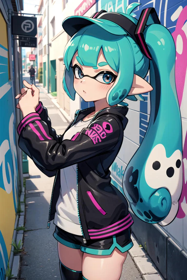 #majinai #Splatoon #inkling #Hatsune #Miku #graffiti #wall #cowboy #shot #alley #way #dynamic #pose