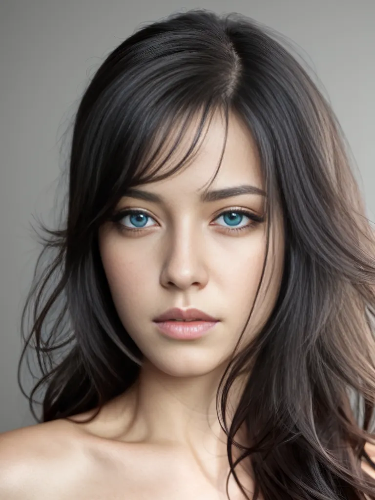 #majinai #realistic #beautiful #face #1girl #solo #clear #detailed #beautiful #eyes #absurdly #long #wavy #hair #black #hair #gray #eyes #hiqcgbody