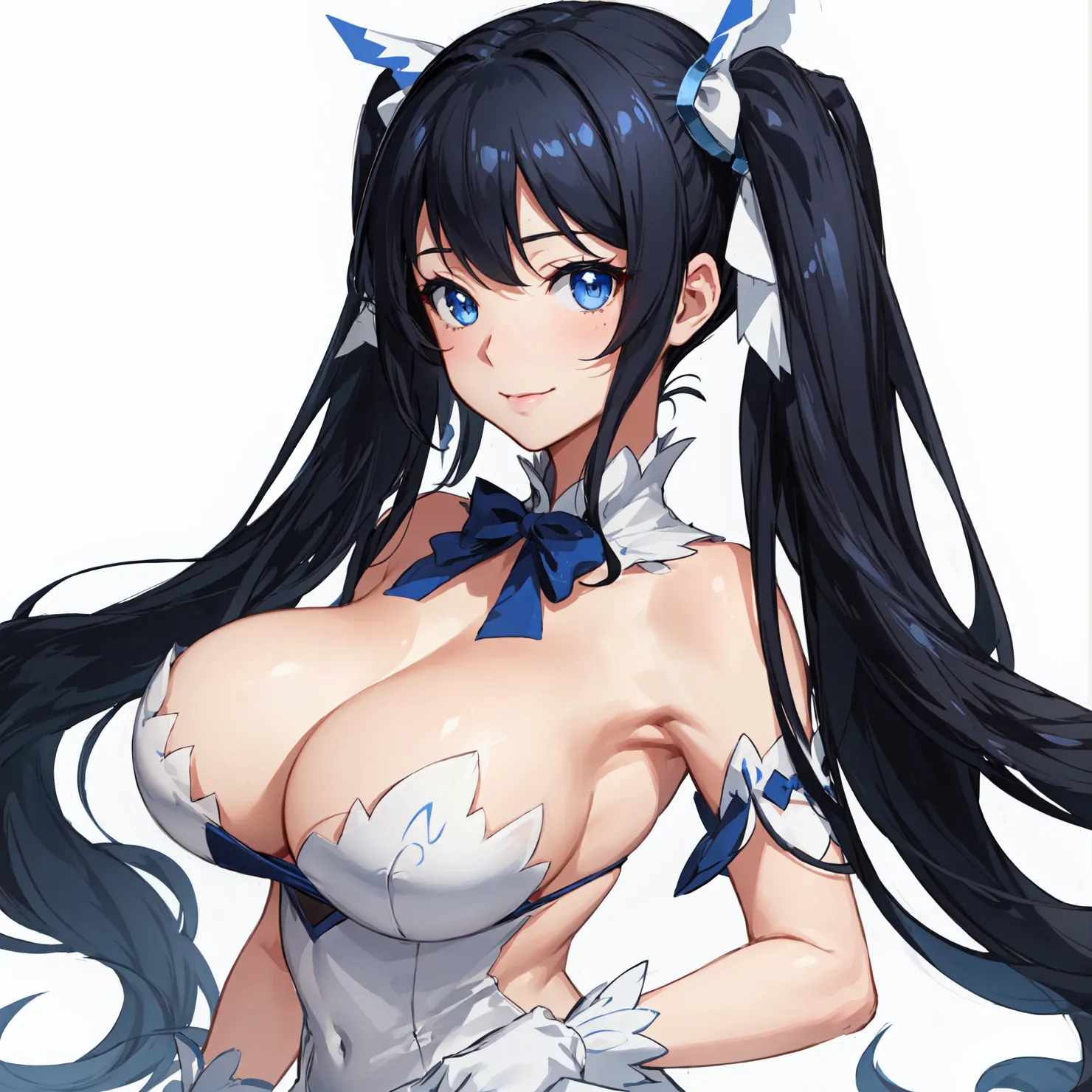#majinai #best_quality #masterpiece #ultra_detailed #highres #production #art #1girl #hestia #danmachi #breasts #solo #long #hair #rei #no #himo #twintails #black #hair #blue #eyes #gloves #ribbon #dress #cleavage #pencil #dress #blue #ribbon #smile #large #breasts #white #gloves #white #dress #white #background #cleavage #cutout #hair #ribbon #looking #at #viewer #simple #background #clothing #cutout #very #long #hair